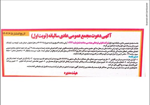 آگهی دعوت مجمع عمومی عادی سالیانه (نوبت اول) تاریخ انتشار5/6/1404